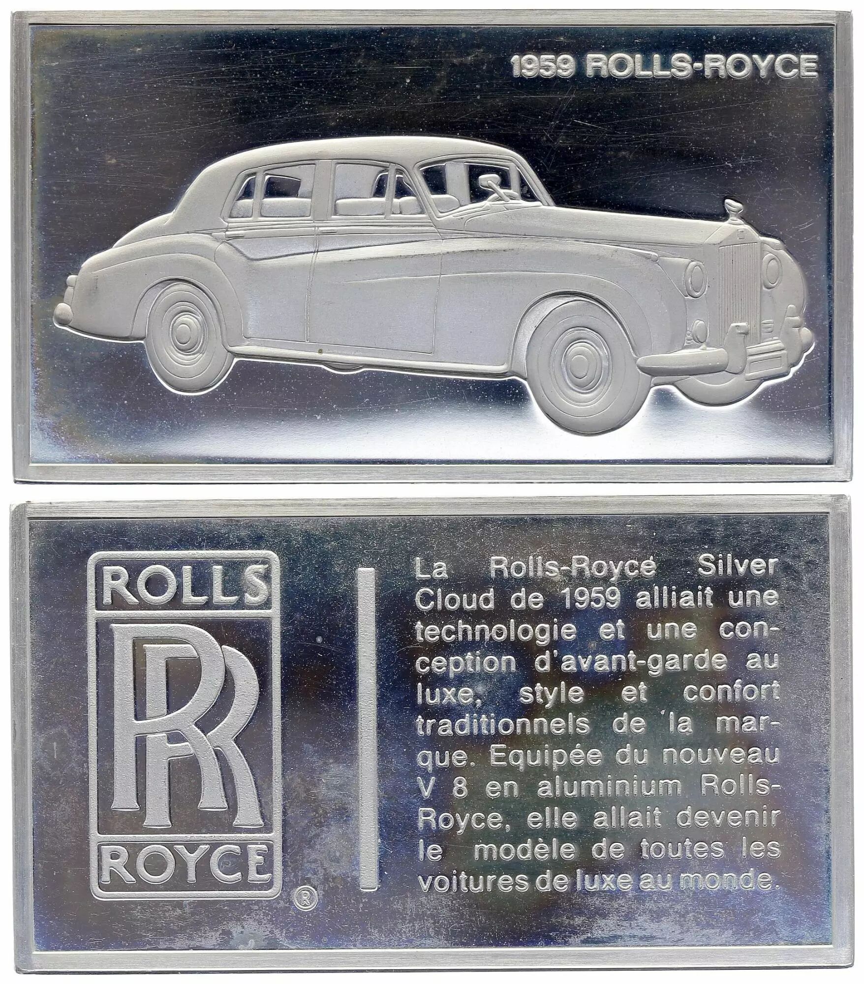 Home > > France 2 Oz Silver Bar - Medaillier Franklin - Rolls Royce Silver Cloud (1959) - Silver - 1982 - XF to AU