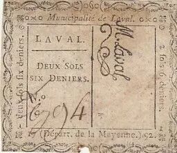 Accueil > Billets Français > Billets de Nécessités (1789-1945) > Billets de Confiance 1789-1793 > France 2 sols 6 deniers - Mayenne - Municipalité de Laval - 1792