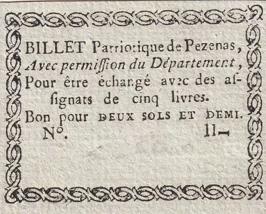 Banknote France 2 Sols et Demi - Herault - Billet Patriotique de Pezenas - 1792 - not issued