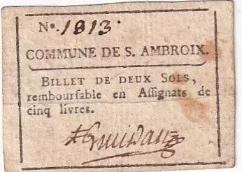 Banknote France 2 Sols - Gard - Commune de Saint-Ambroix - 1792