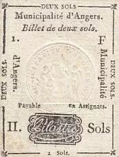 Banknote France 2 Sols - Maine et loire - Angers municipality - 1792