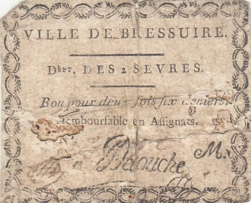 Banknote France 2 sous 6 deniers - Deux-Sèvres - Bressuire's city - 1792