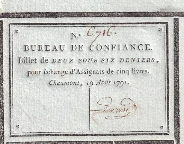 Home > > France 2 Sous 6 Deniers - Haute-Marne - Bureau de Confiance de Chaumont - 19-08-1791 - 6716
