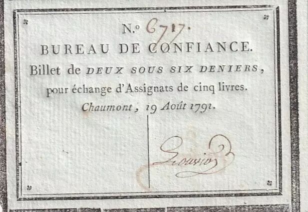 Home > > France 2 Sous 6 Deniers - Haute-Marne - Bureau de Confiance de Chaumont - 19-08-1791 - 6717