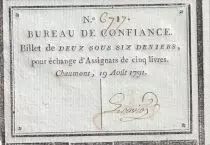 Banknote France 2 Sous 6 Deniers - Haute-Marne - Bureau de Confiance de Chaumont - 19-08-1791 - 6717