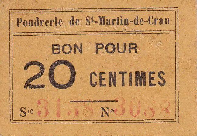 Banknote France 20 cent. Saint-Martin-de-Crau Poudrerie