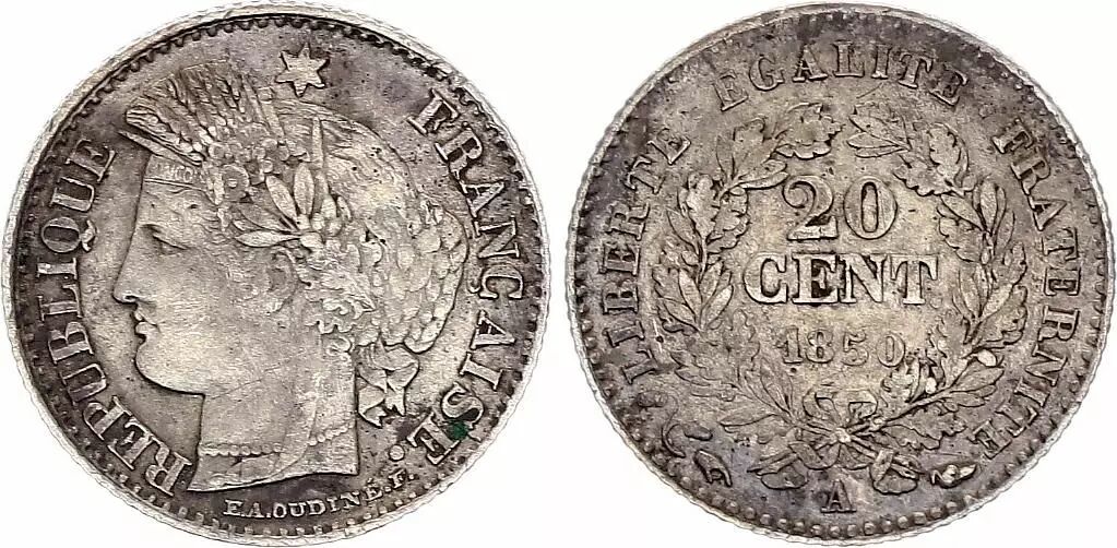 Pièce France 20 Centimes Cérès - 1850 A Paris Argent