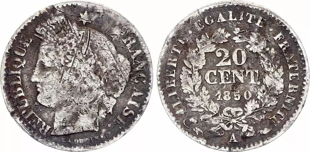Home > > France 20 Centimes Ceres - 1850 A Paris Silver
