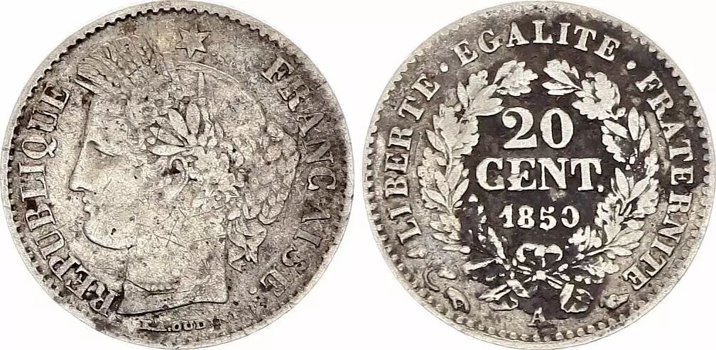 Home > French coins (470 à 2002) > Modern Currencies (1789 to 2002) > 20 Cents > France 20 Centimes Ceres - 1850 A Paris Silver