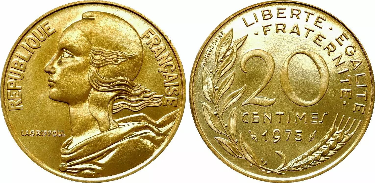 Pièce France 20 Centimes Marianne - 1975 issu de coffret