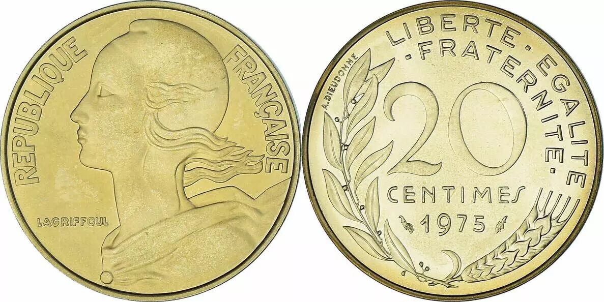 Accueil > Monnaies françaises (470 à 2002) > Monnaies Modernes (1789 à 2002) > 20 centimes > France 20 Centimes Marianne - 1975 - Issu de Coffret FDC