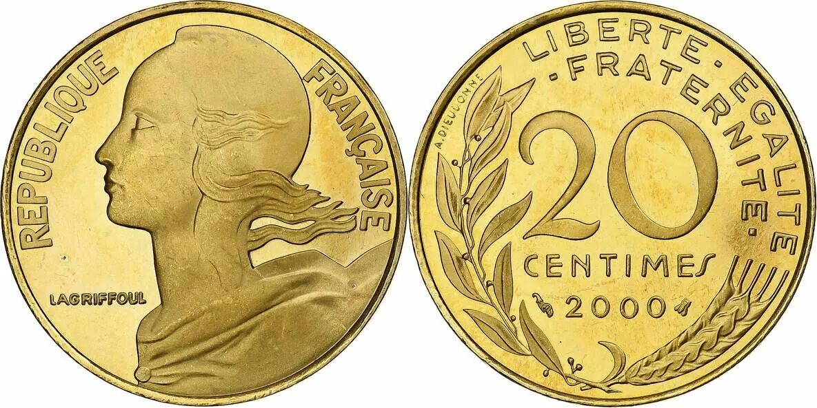 Accueil > Monnaies françaises (470 à 2002) > Monnaies Modernes (1789 à 2002) > 20 centimes > France 20 Centimes Marianne - 2000 Frappe BE - Issu de coffret