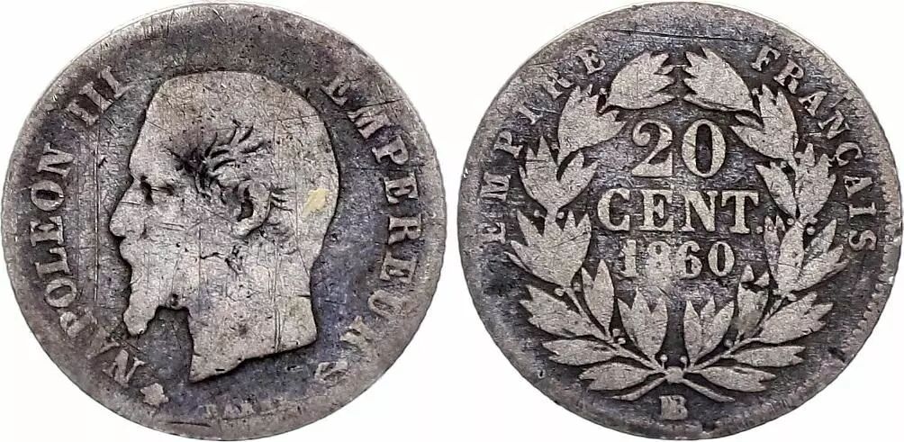 Accueil > Archivage > France 20 Centimes Napoléon III - 1860 BB Strasbourg Argent