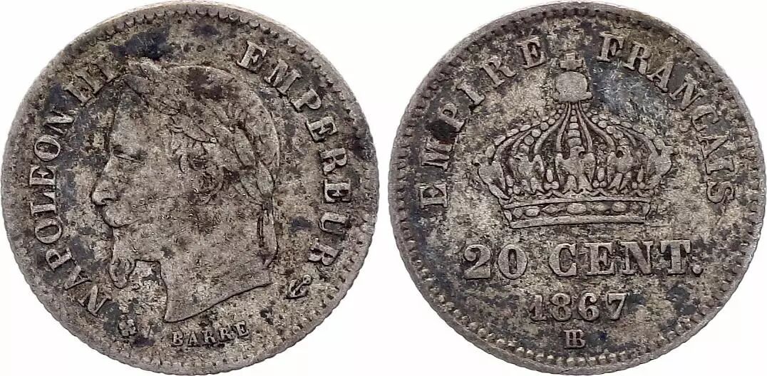 Accueil > Monnaies françaises (470 à 2002) > Monnaies Modernes (1789 à 2002) > 20 centimes > France 20 Centimes Napoleon III - 1867 BB Strasbourg - Argent
