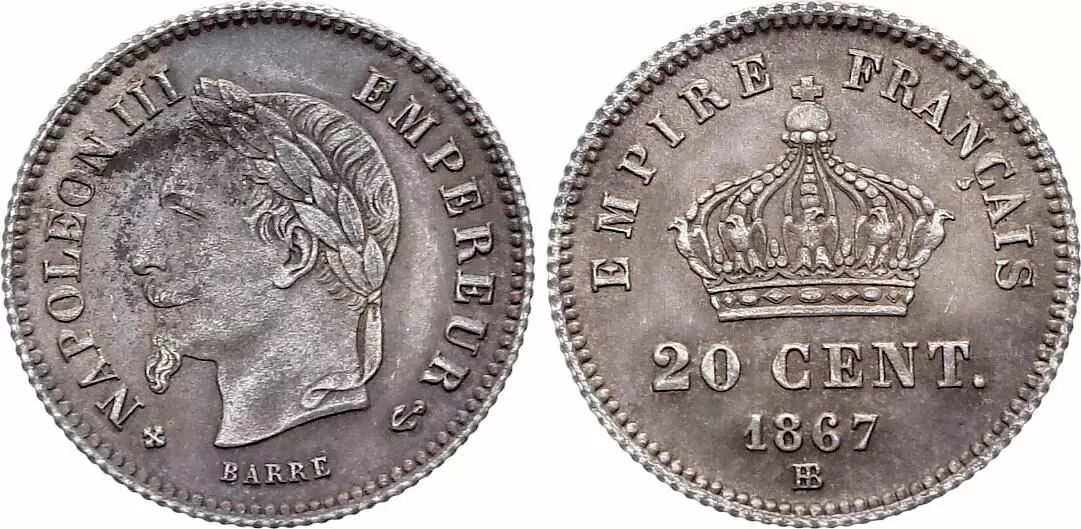 Accueil > Archivage > archivage-Archivage > France 20 Centimes Napoleon III - 1867 BB Strasbourg - Argent