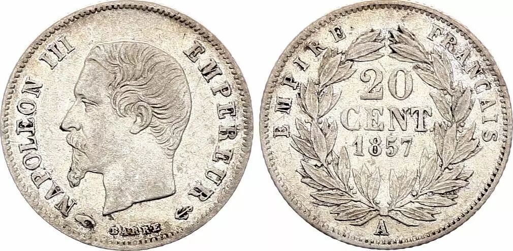 Pièce France 20 Centimes Napoléon III Grands Différents - 1857 A Paris Argent