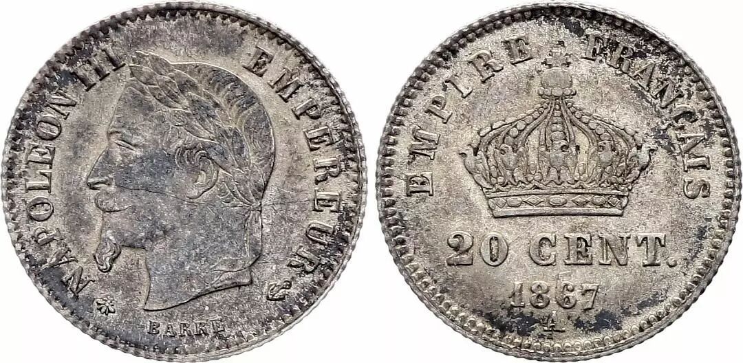 Home > > France 20 Centimes Napoleon III Head Laurel - 1867 A Paris Silver