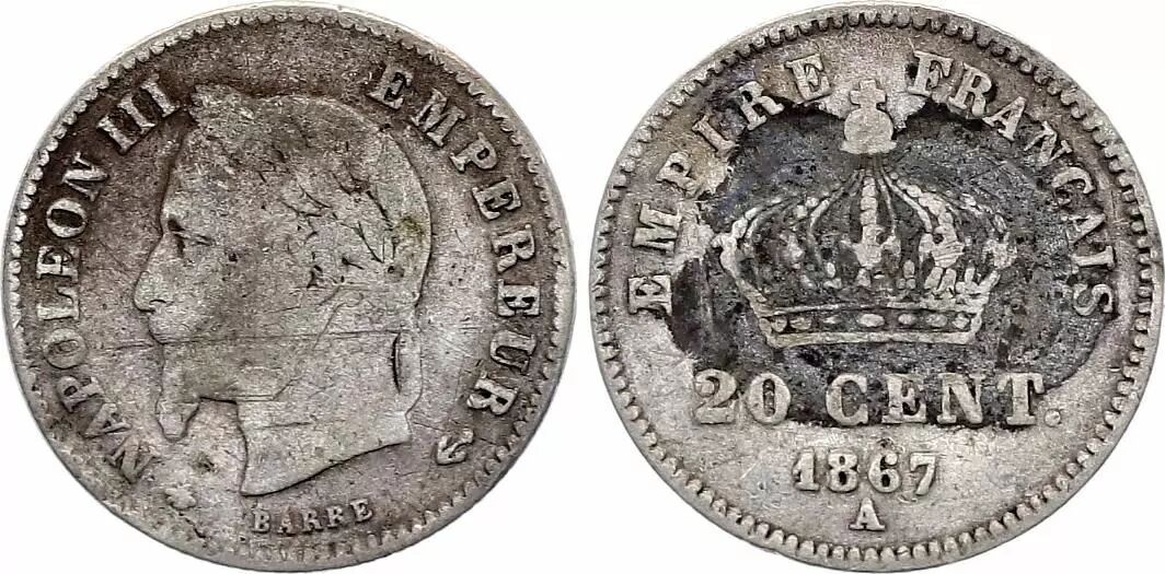 Home > > France 20 Centimes Napoleon III Head Laurel - 1867 A Paris Silver