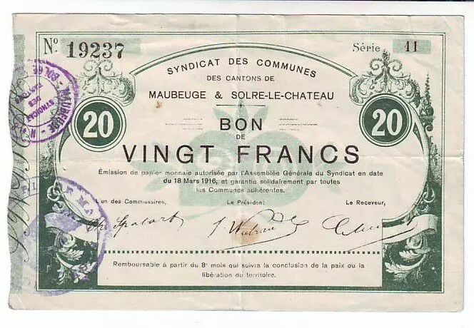 Banknote France 20 F Maubeuge-Et-Solre