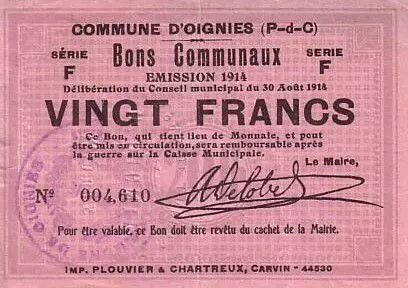 Les Billets des Communes et des Villes (Pir. 62.1059)
