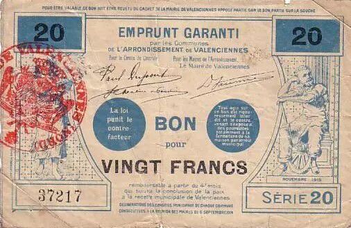 Billet France 20 F Valenciennes
