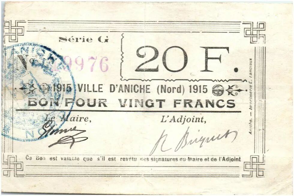 Banknote France 20 Francs Aniche City - 1915
