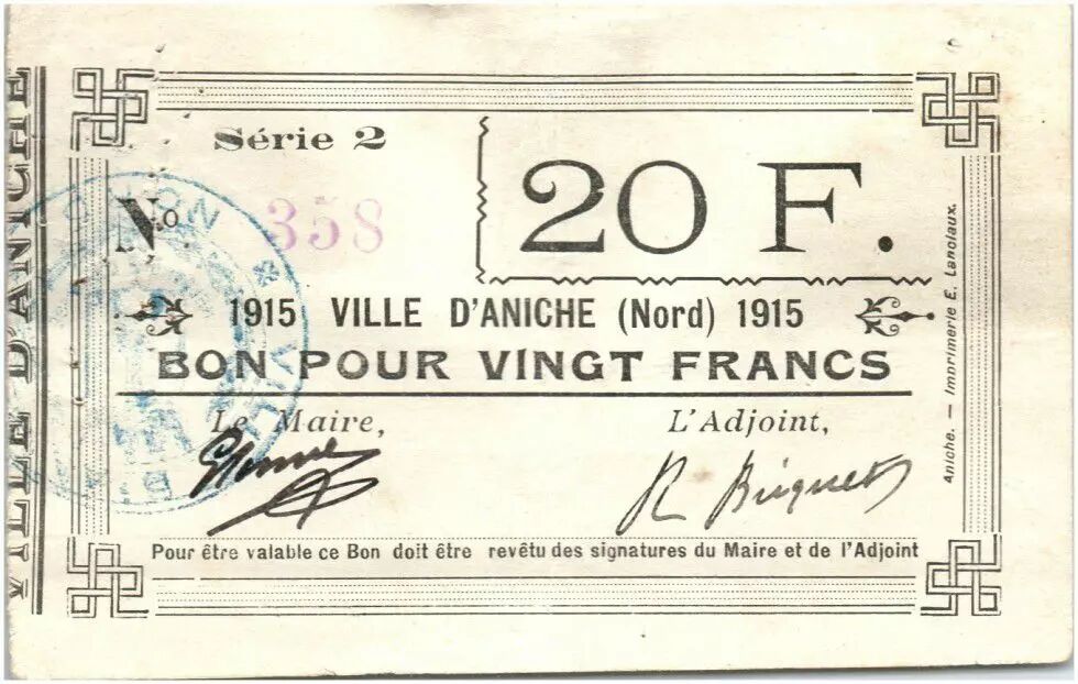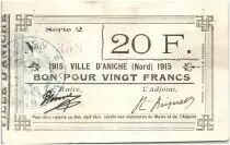 Billet France 20 Francs Aniche Ville - 1915
