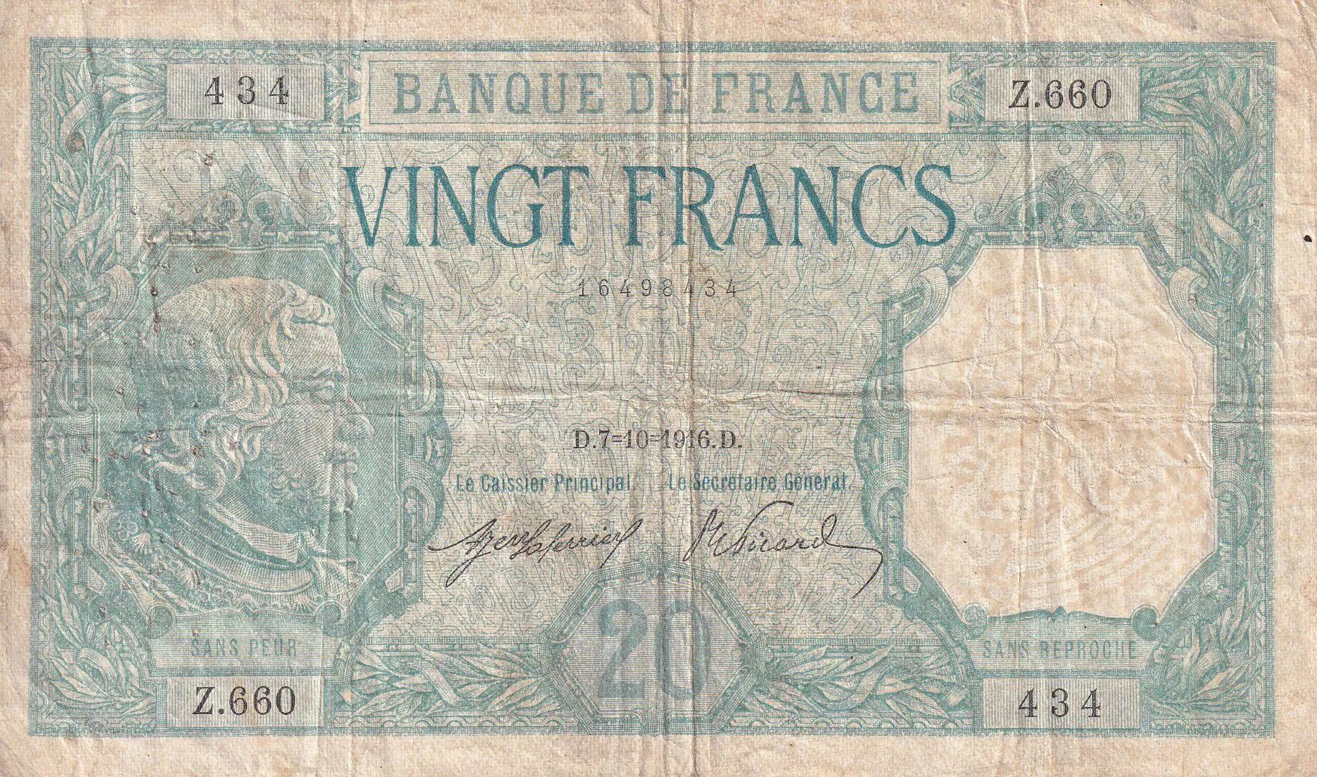 Accueil > Archivage > France 20 Francs - Bayard - 07-10-1916 - Série Z.660 - TB - F.11.01