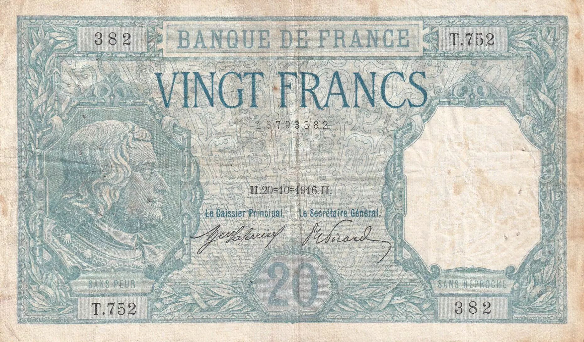 Accueil > Archivage > France 20 Francs - Bayard - 20-10-1916 - Série T.752