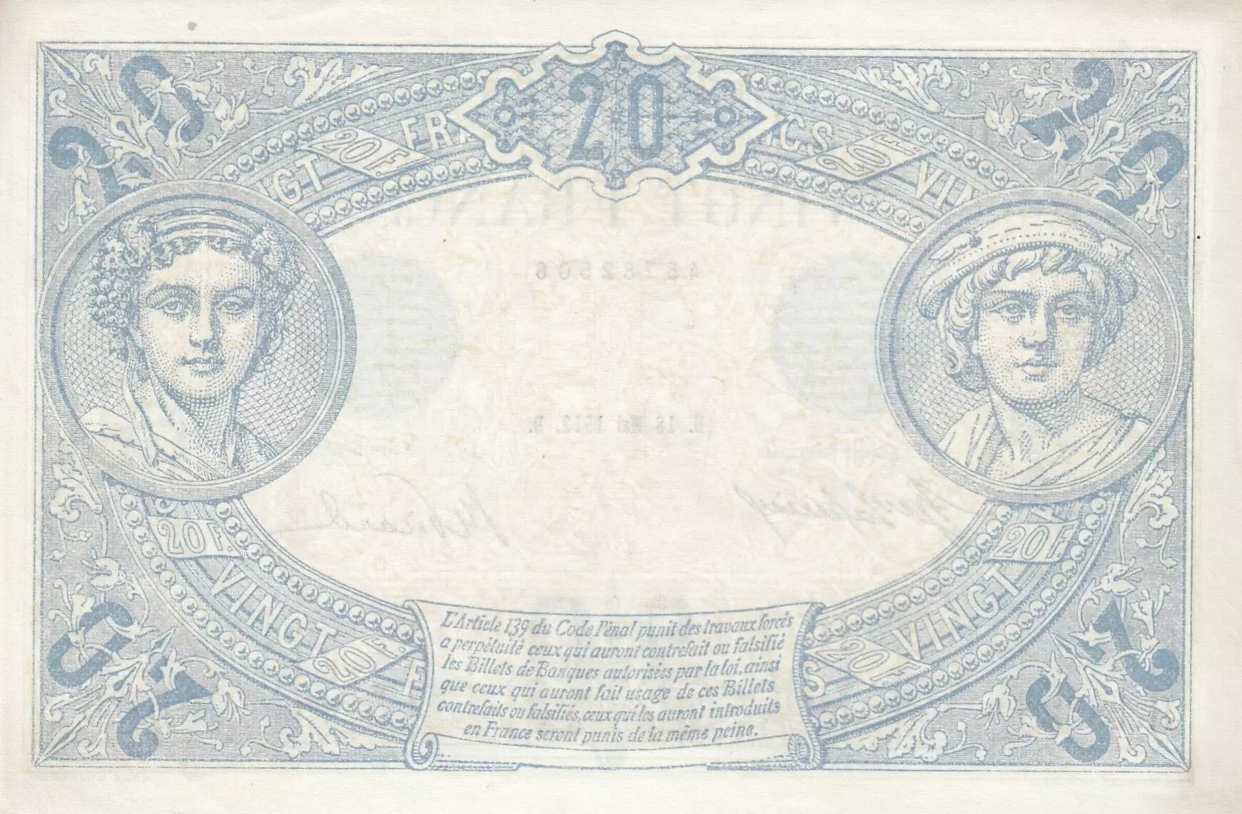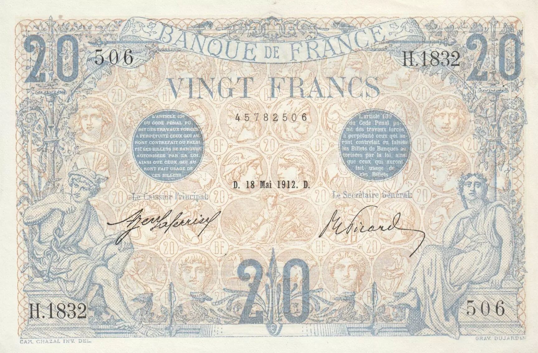 Accueil > Archivage > archivage-Billets Français > France 20 Francs - Bleu - 18-05-1912 - Série H.1832