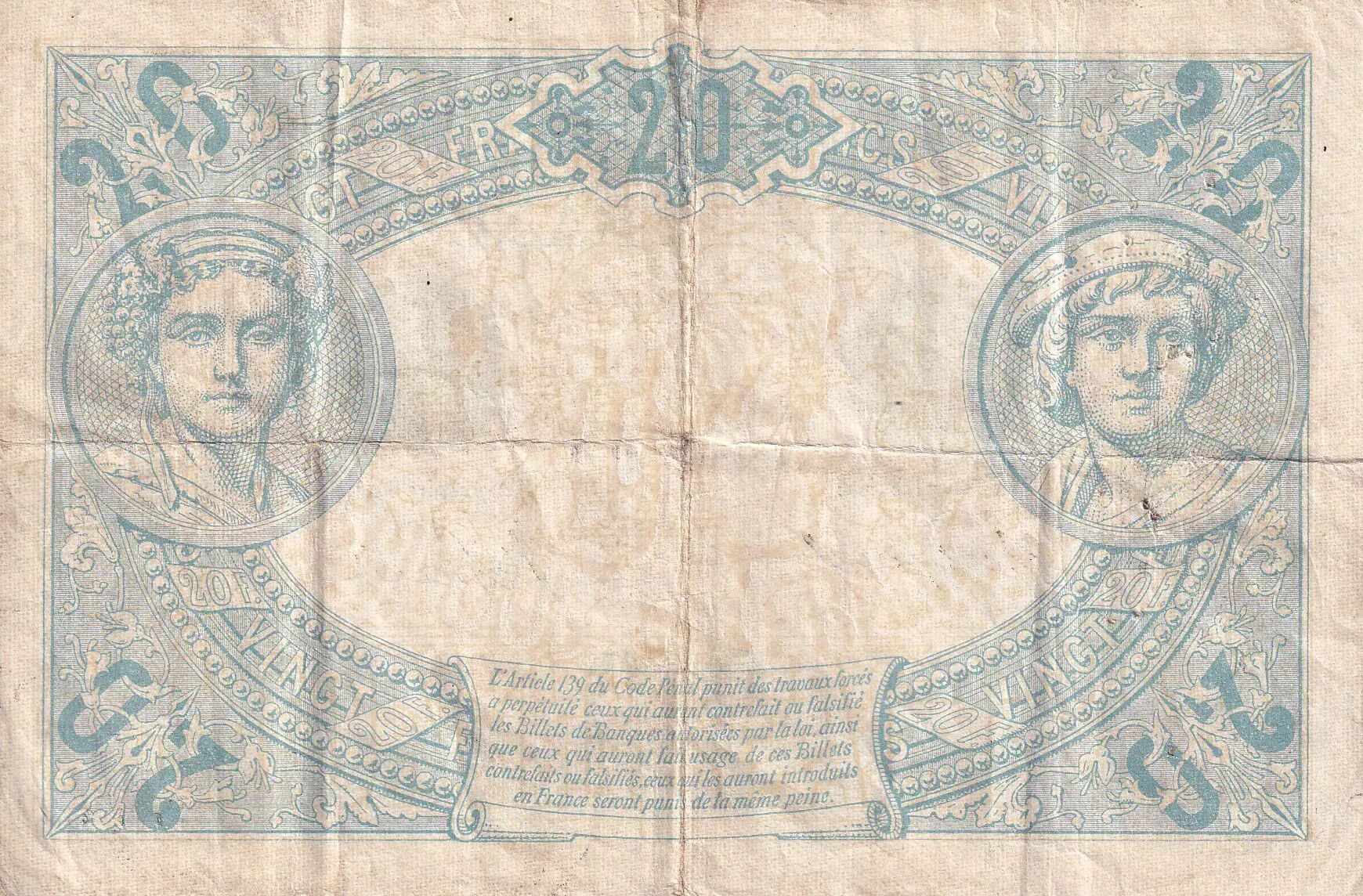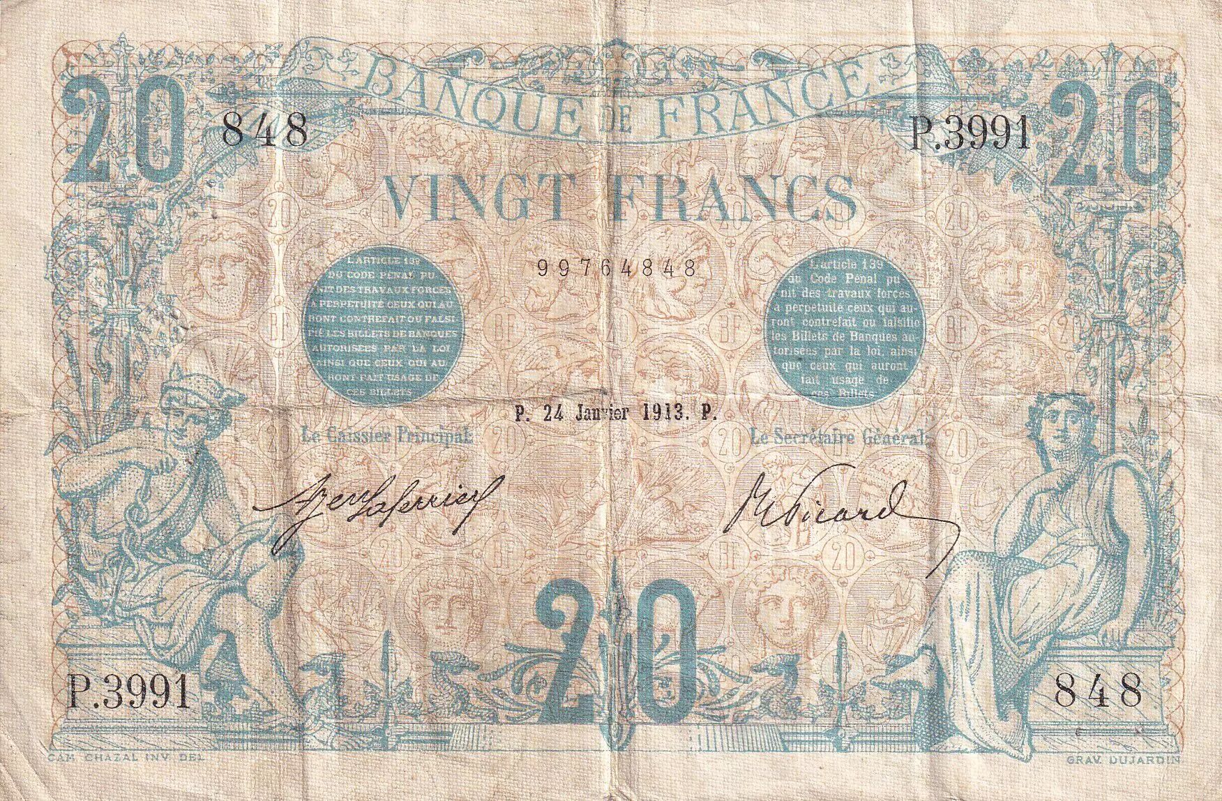 Banknote France 20 Francs - Blue - 24-01-1913 - Serial P.3991 - F - P.68