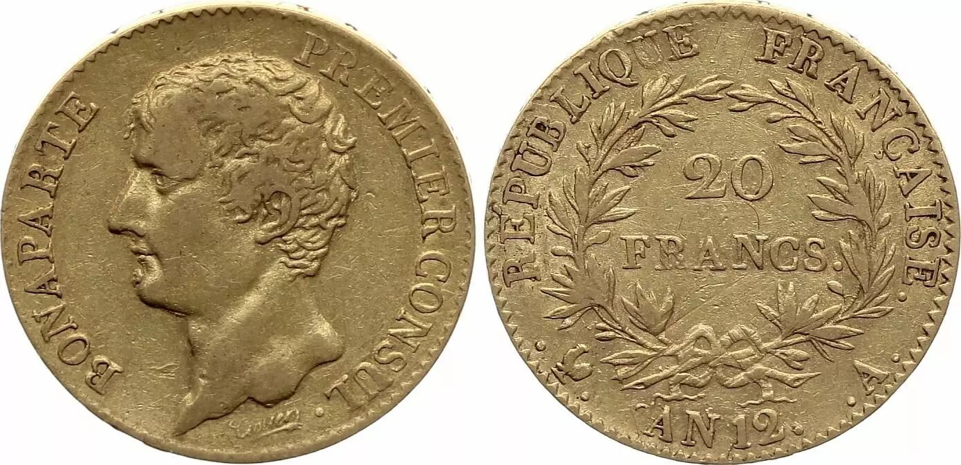 Home > > France 20 Francs - Bonaparte - Premier Consul - An 12 A Paris - gold