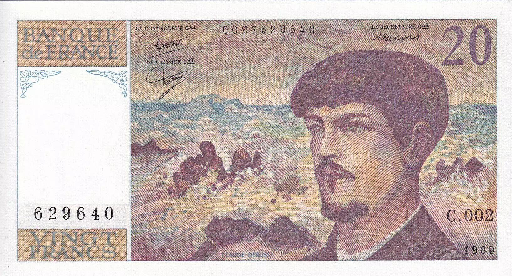 Banknote France 20 Francs - Debussy - 1980 - Serial C.002 - P.151