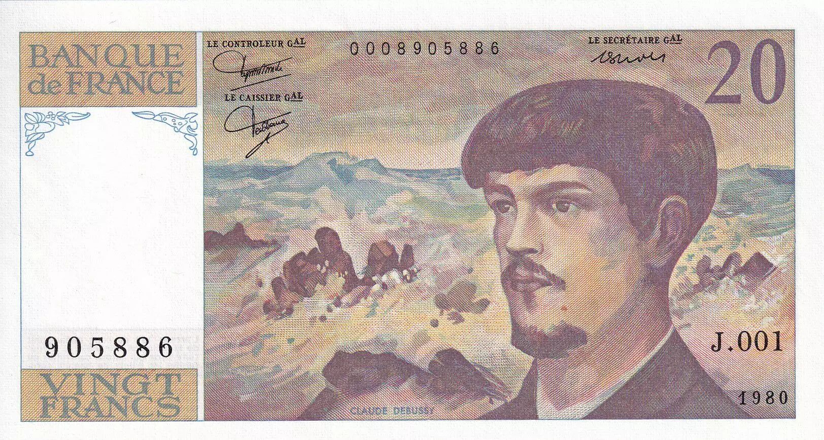 Banknote France 20 Francs - Debussy - 1980 - Serial J.001 - P.151