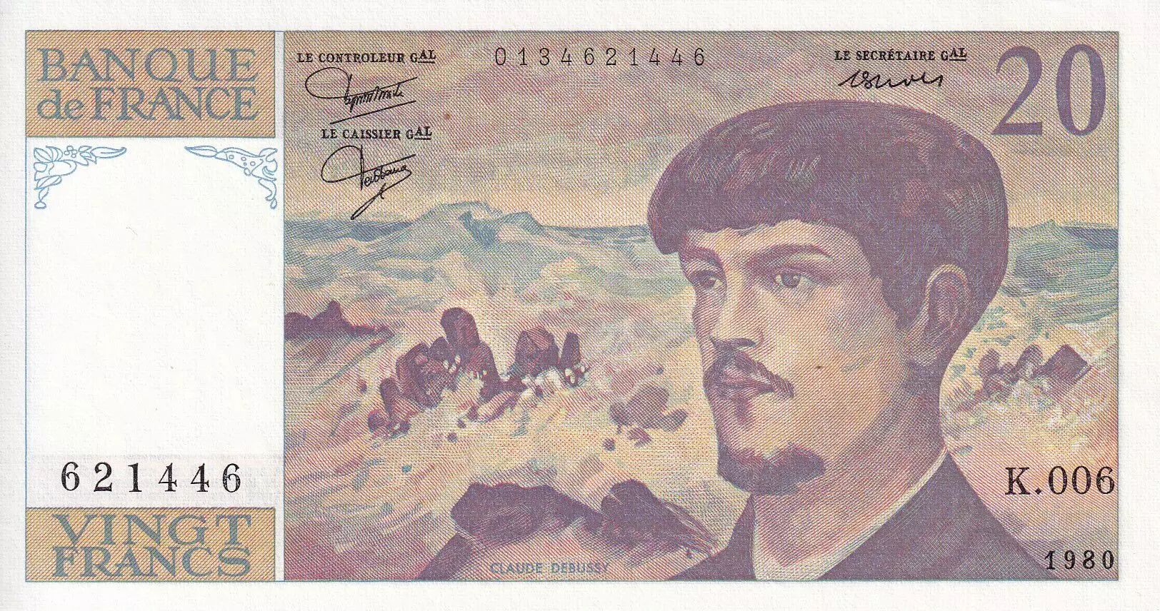 Banknote France 20 Francs - Debussy - 1980 - Serial K.006 - P.151