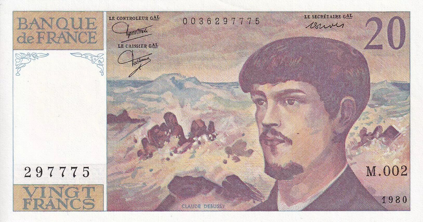 Banknote France 20 Francs - Debussy - 1980 - Serial M.002 - P.151