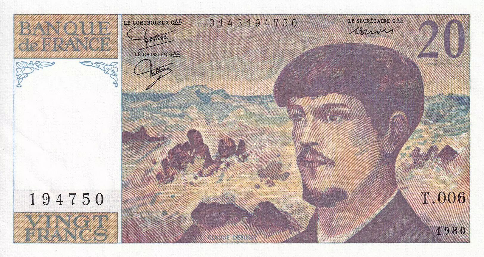 Banknote France 20 Francs - Debussy - 1980 - Serial T.006 - P.151