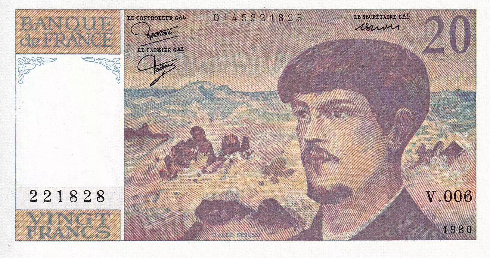 Banknote France 20 Francs - Debussy - 1980 - Serial V.006 - P.151