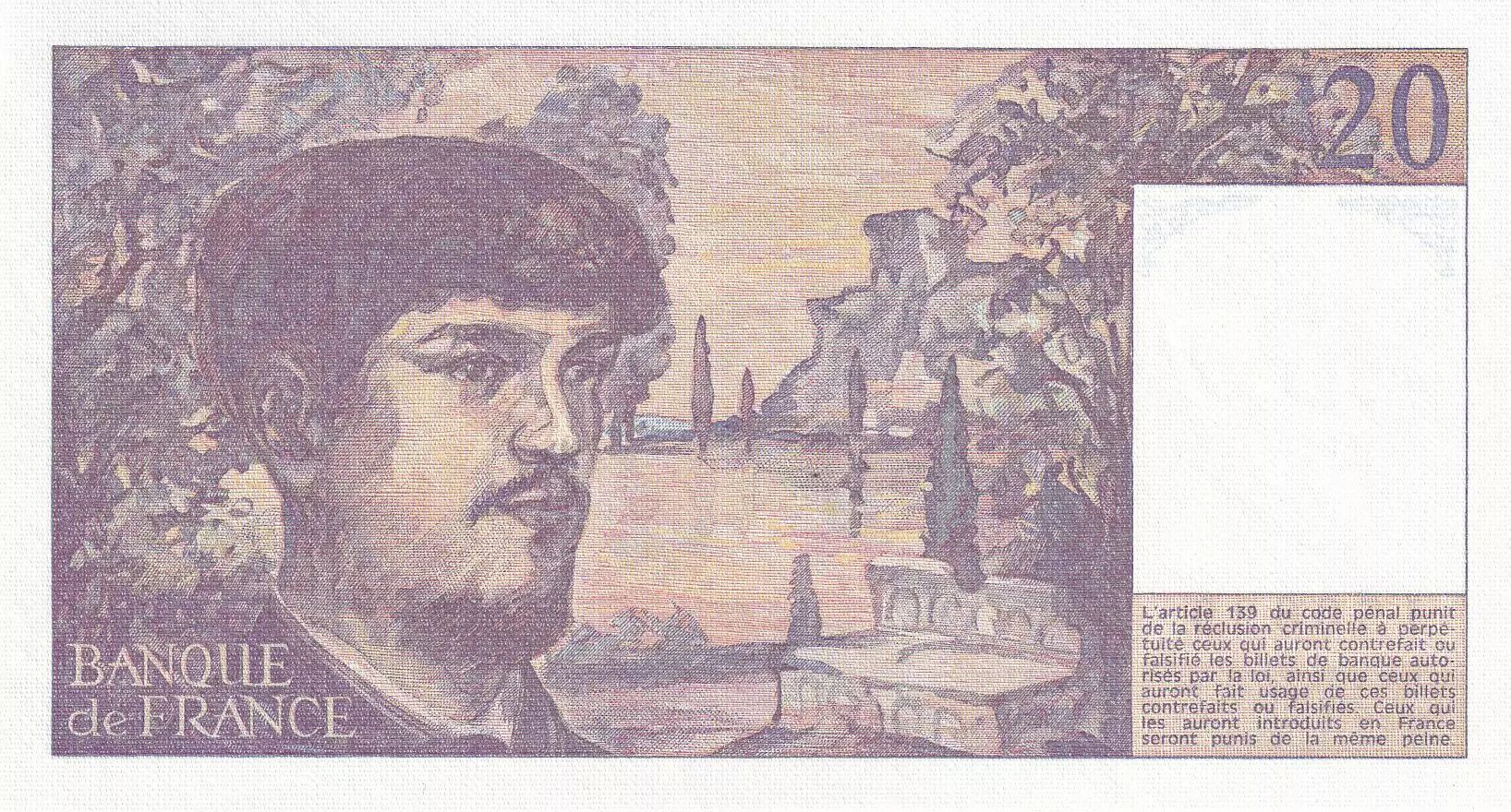 Banknote France 20 Francs - Debussy - 1980 - Serial W.004 - P.151