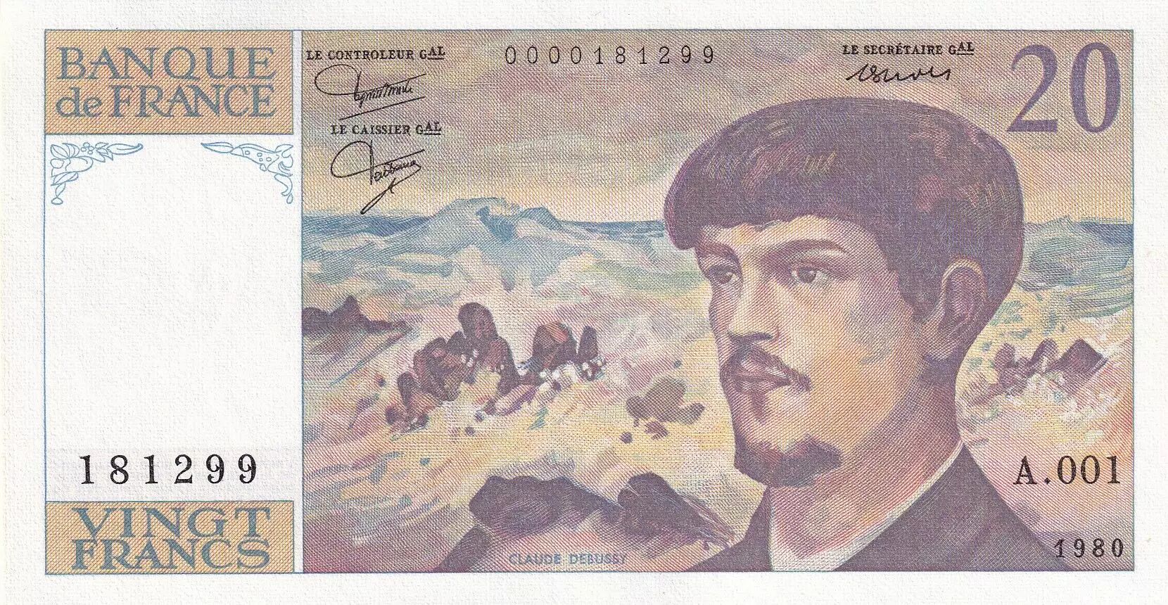 Accueil > Archivage > France 20 Francs - Debussy - 1980 - Série A.001 - F.66.01A1
