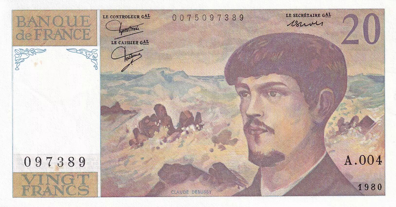 Accueil > Archivage > France 20 Francs - Debussy - 1980 - Série A.004 - F.66.01A4