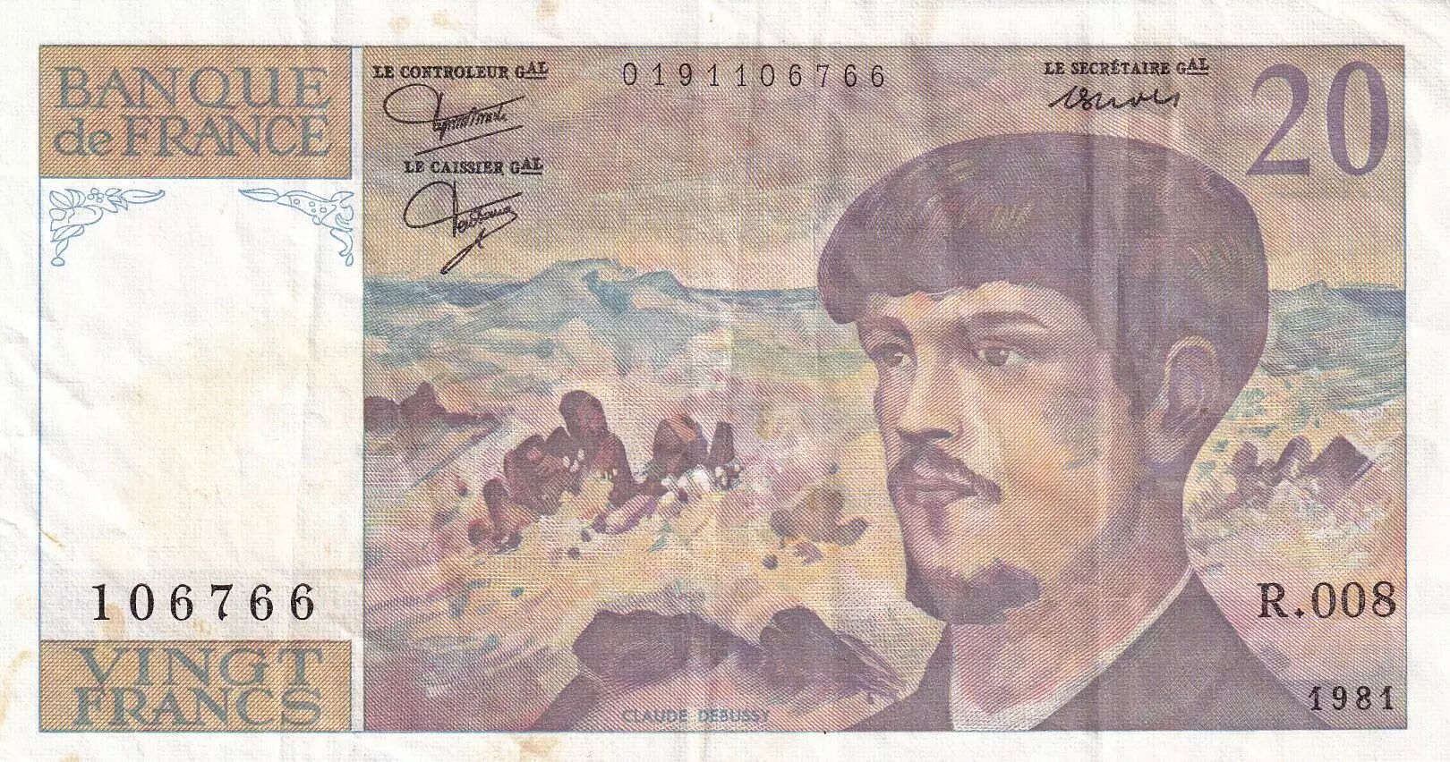 Banknote France 20 Francs - Debussy - 1981 - Serial R.008