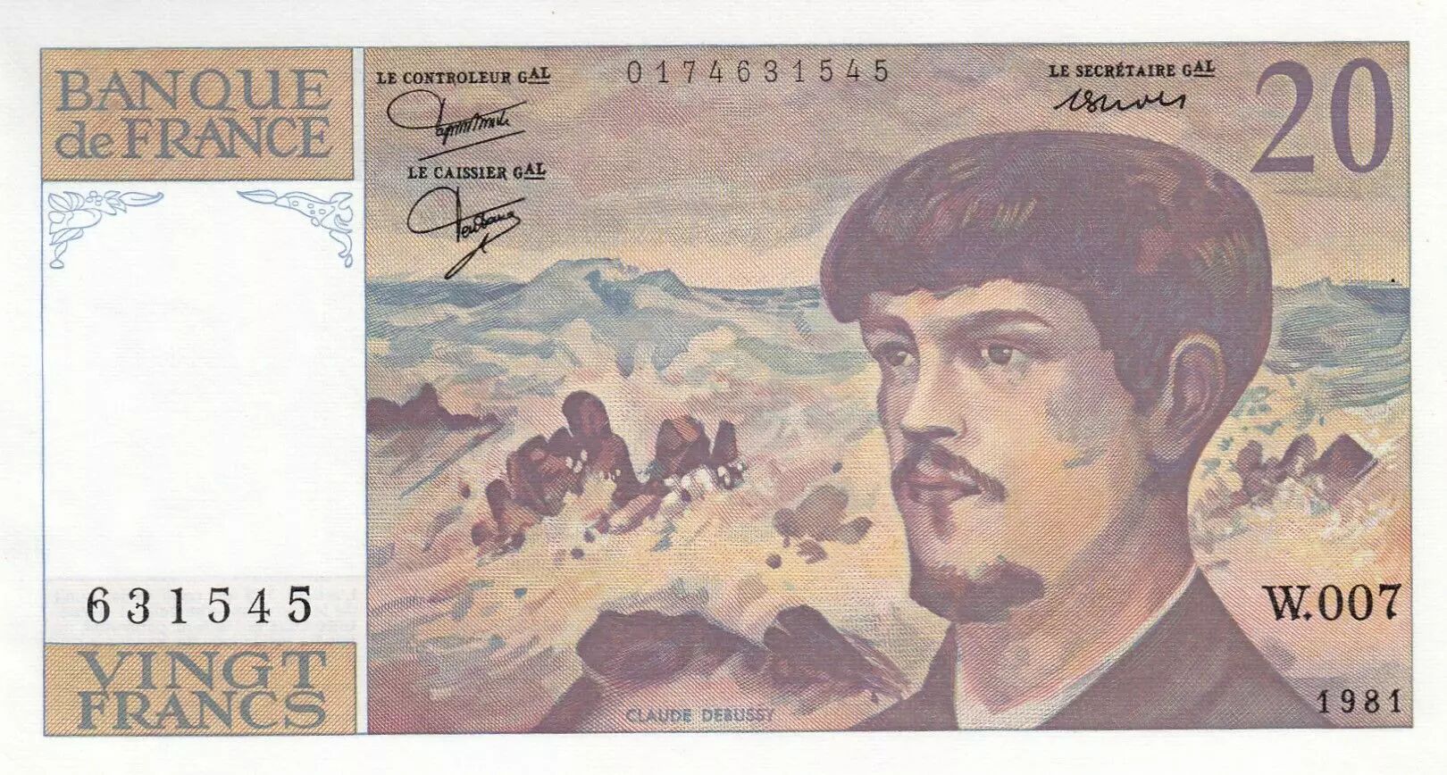 Banknote France 20 Francs - Debussy - 1981 - Serial W.007