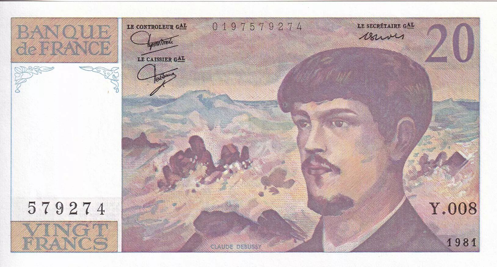 Billet France 20 Francs - Debussy - 1981 - Série Y.008 - F.66.02