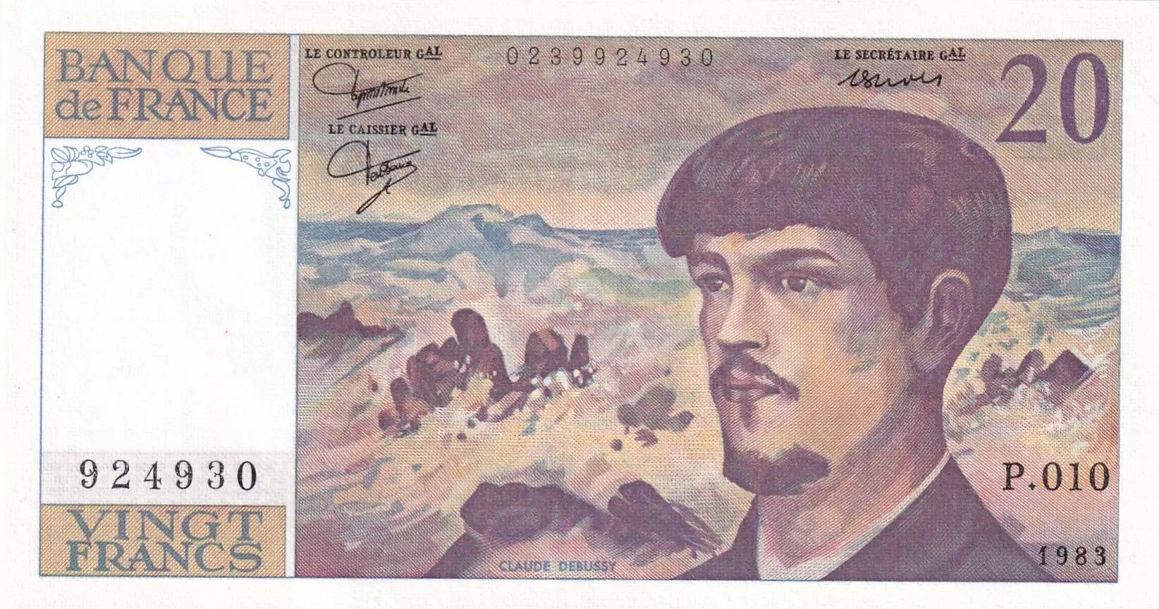 Banknote France 20 Francs - Debussy - 1983 - Serial P.010