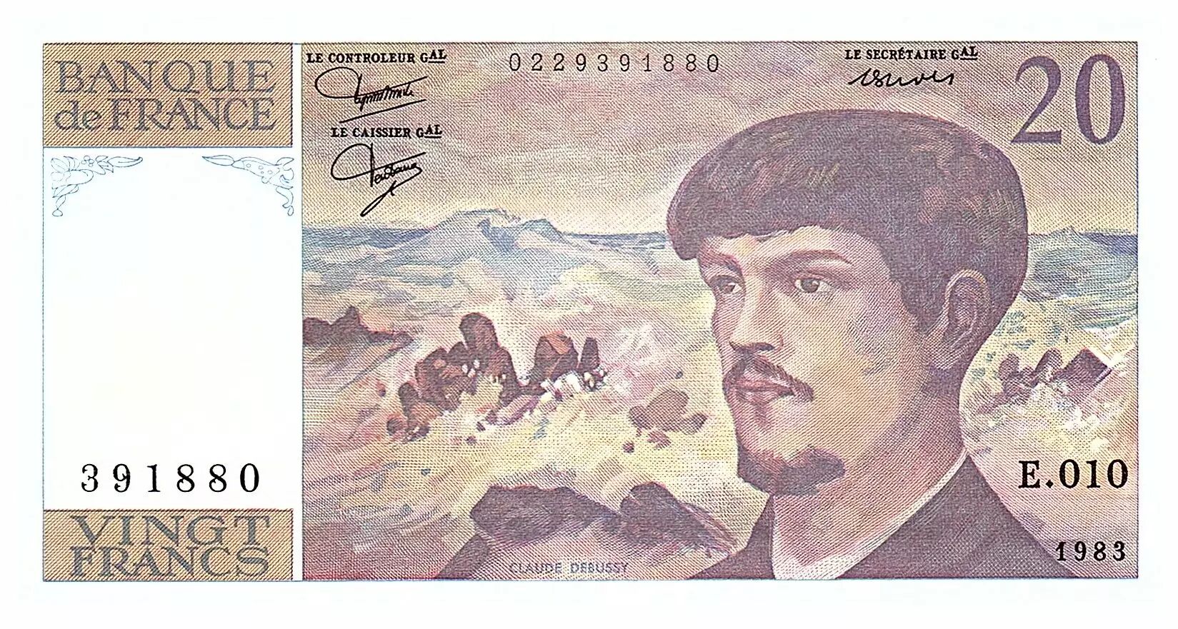 Accueil > Archivage > France 20 Francs Debussy - 1983 - Série E.010 - Fay.66.4