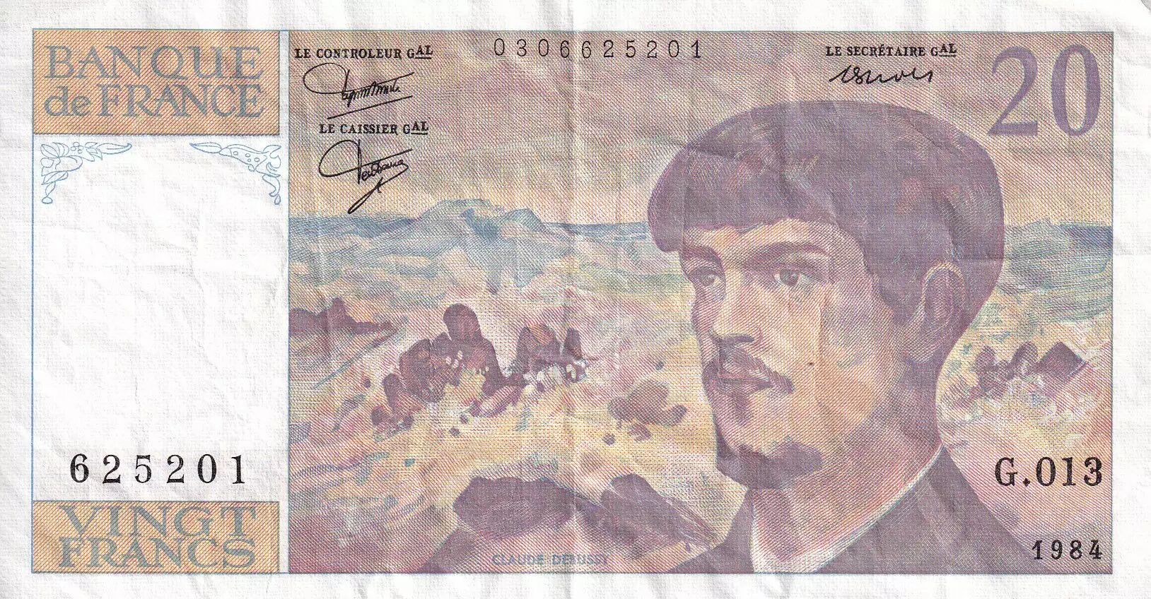 Banknote France 20 Francs - Debussy - 1984 - Serial G.013 - P.151