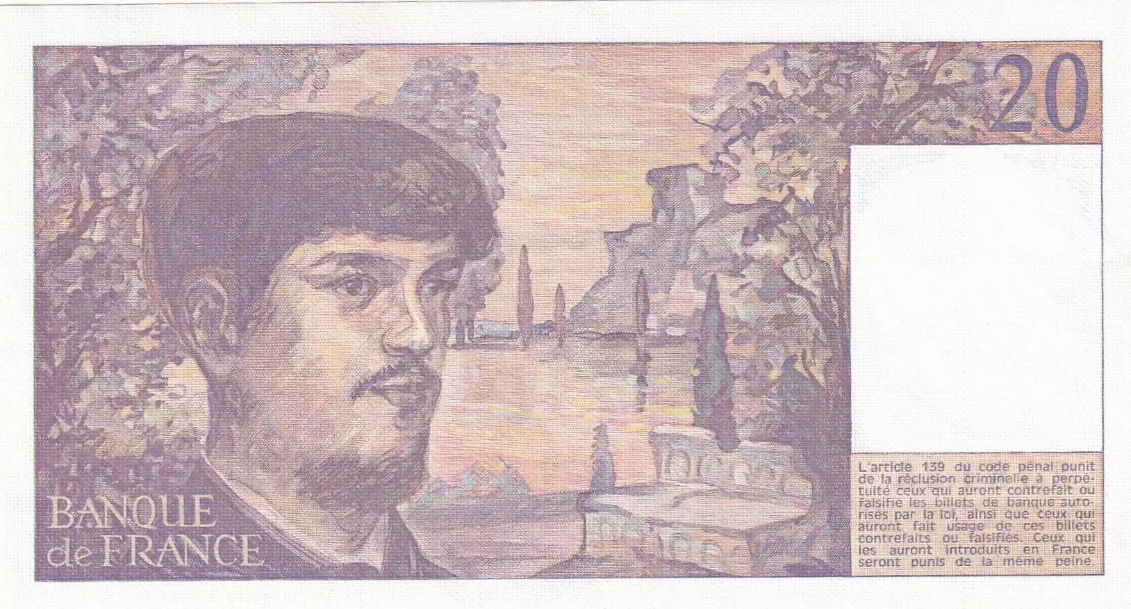 Banknote France 20 Francs - Debussy - 1984 - Serial Q.014