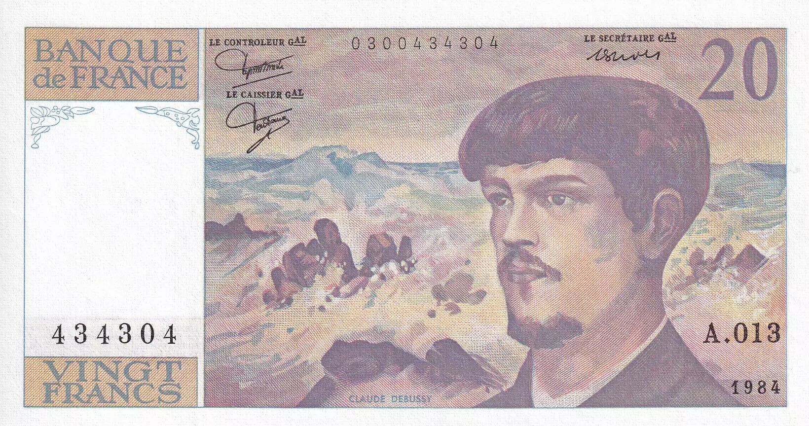 Billet France 20 Francs - Debussy - 1984 - Série A.013 - F.66.05A13