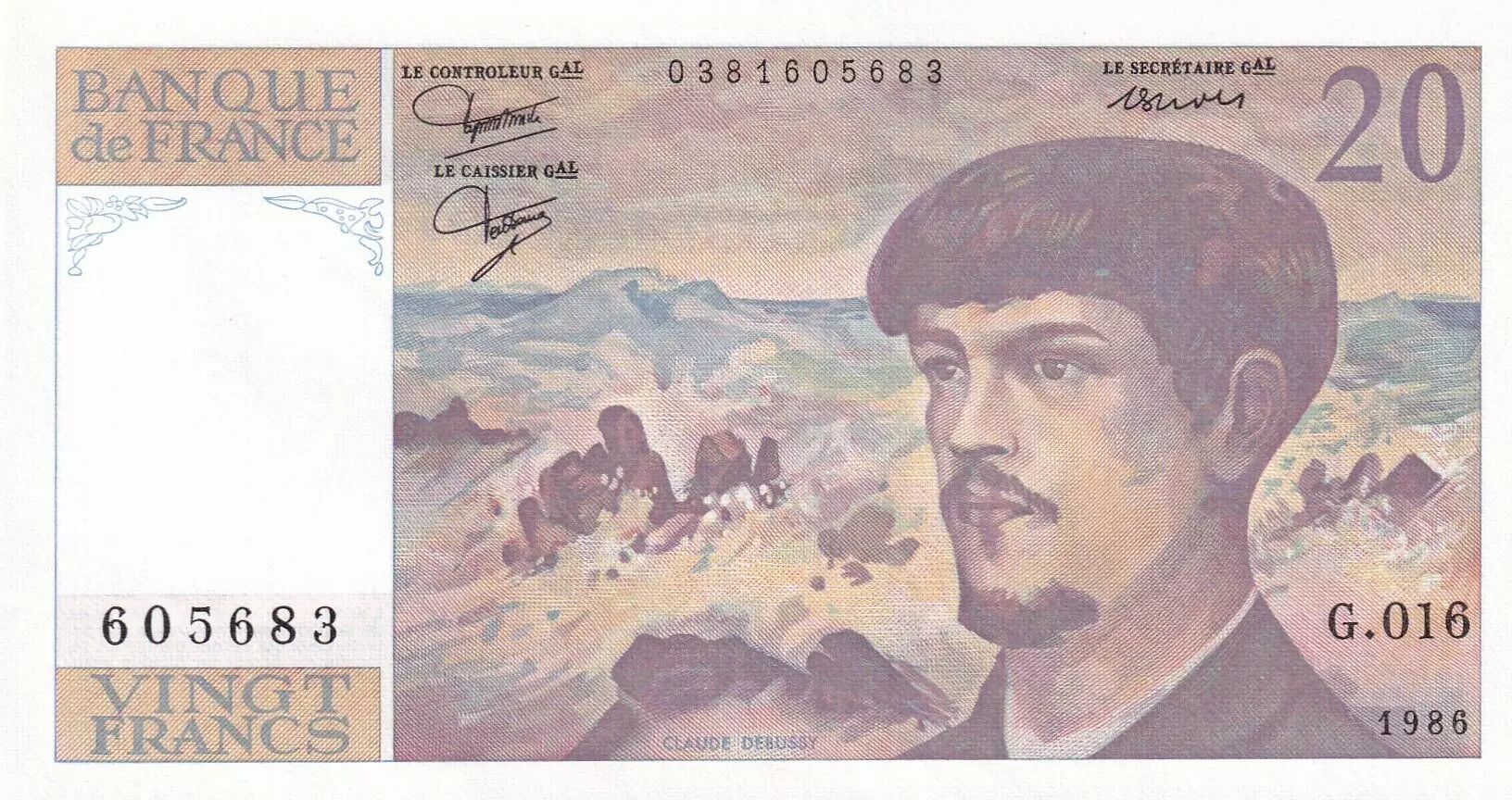 Banknote France 20 Francs - Debussy - 1985 - Serial G.016